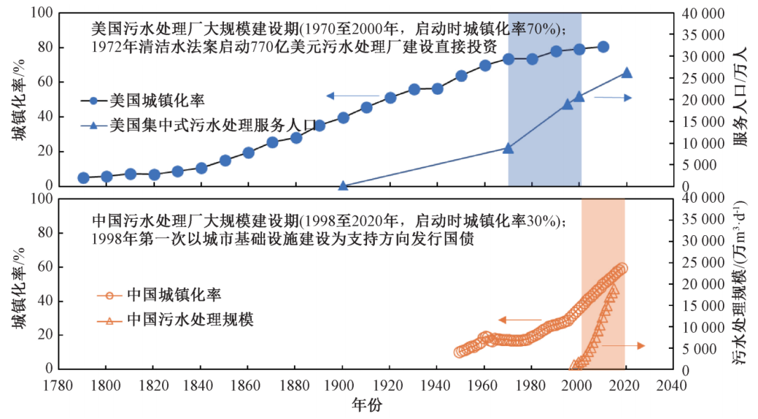 快速城鎮(zhèn)化導(dǎo)致的污水處理廠與周邊社區(qū)之間的矛盾關(guān)系,是我國污水處理行業(yè)面臨的特色問題,與我國快速城鎮(zhèn)化的歷史背景相關(guān)。從2000年到2020年,我國只用了20年的時間完成了城鎮(zhèn)化率從30%提升到60%的目標(biāo)。因此可以說,污水處理廠的建設(shè)幾乎跟城市的發(fā)展建設(shè)同步進(jìn)行,或者說,城市的建設(shè)速度超過了規(guī)劃速度,導(dǎo)致大量早期建設(shè)的污水廠被城市建設(shè)所包圍。相比之下,美國及歐洲從上個世紀(jì)初就開始了城鎮(zhèn)化進(jìn)程,比我國早了近兩百年,用了近70年的時間完成城鎮(zhèn)化率從30%的60%的發(fā)展階段,西方國家的污水處理廠是在其城鎮(zhèn)化后期,水污染問題出現(xiàn)后才開始規(guī)劃建設(shè)。因此,我國污水處理廠與城市發(fā)展矛盾的出現(xiàn)具有一定國情特色,從而也需要符合中國的創(chuàng)新解決方案。