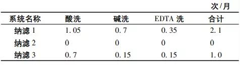 監(jiān)測期間納濾系統(tǒng)各段清洗頻率如表4所示。