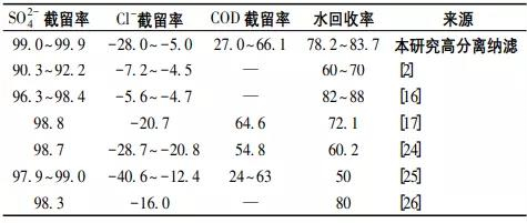 綜上所述,高分離納濾系統(tǒng)同時具備較高的so2-4截留率和水回收率,以及較低的cl-截留率,表明其對so2-4和cl-具有很好的分離效果,這對于提升煤化工高鹽廢水零排放的分鹽效果至關(guān)重要。